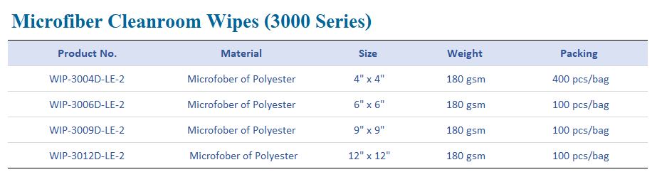 3000 Series Cleanroom Wipes (Microfiber of Polyester)